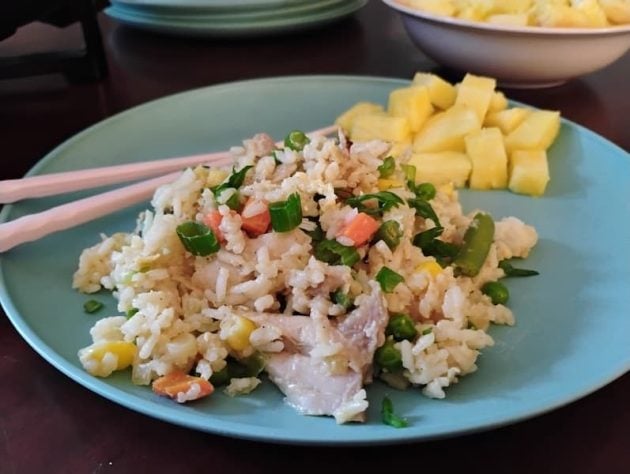 If you’re looking for an easy, cheap way to use up leftover chicken or rice, this is the perfect meal idea. Making fried rice is so fast — if your chicken and rice are already cooked, this entire meal can be on the table in less than 15 minutes! And, if you love Chinese food but are trying to save money on takeout, this one is for you!